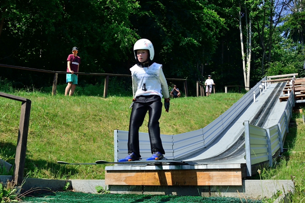 Und doch zog es am vergangenen Sonnabend Jungen und Mädchen vom Wintersportverein 1923 Bad Freienwalde und ihre Eltern in die Sparkassen – Ski – Arena. Endlich wieder ein Wettkampf! Für fast alle war es der erste Wettkampf seit November 2020; für viele sogar der erste Wettkampf überhaupt. Denn die Kleinsten unter den Springern und Springerinnen trainierten erst seit drei Monaten beim WSV das Skispringen. Und nun war es ihr erster Wettkampf. Sie wollten unbedingt auf dem Treppchen stehen. Dafür lohnt es sich doch, auch bei mehr als 30 Grad schwitzend vom Bakken zu rutschen und so weit wie möglich zu fliegen! Und die Flüge konnten sich dann auch sehen lassen!