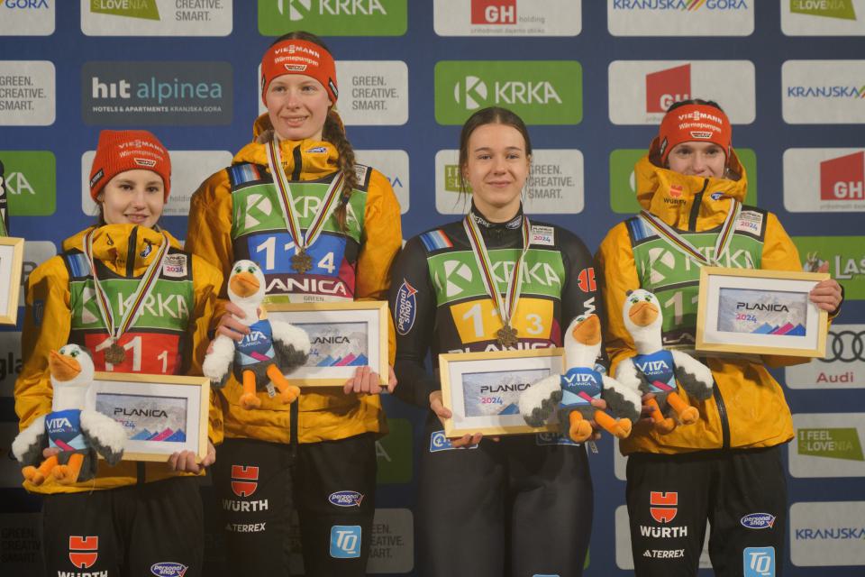 Zum ersten Mal in der Geschichte des Wintersportvereins 1923 geht eine Weltmeisterschaftsmedaille nach Bad Freienwalde. Die 19jährige Alvine Holz holt in Planica mit ihren Kolleginnen Anna-Fay Scharfenberg, Megi Lou Schmidt und Kim-Amy Duschek die Bronzemedaille im Teamspringen der Damen von der K 95-Schanze im dortigen Nordischen Wintersportzentrum. Dabei war der Wettkampf bei strömenden Regen alles andere als langweilig. Nach dem ersten Durchgang lagen die Deutschen noch knapp auf Rang 2. Im zweiten Durchgang ging Anna-Fay Scharfenberg als erste der deutschen Frauen über den Bakken und konnte diesen Platz verteidigen. Das gelang auch Kim-Amy Duschek. Megi-Lou Schmidt stürzte leider und musste kurzzeitig ins Krankenhaus. Schließlich besiegelte Alvine Holz mit einem herrlichen Sprung über 94 Meter die erste Weltmeisterschaftsmedaille in Bronze für den WSV 1923 und Brandenburg. Die Freude bei allen war groß, als dann während der Siegerehrung Megi-Lou Schmidt wieder mit den anderen dreien auf das Siegerpodest steigen konnte. Als ich Megi-Lou danach fragte, wie es ihr ginge, war ihre Antwort: „Ich habe so weit gezogen, wie es ging. Aber ich glaube, ich bin breitbeinig aufgesprungen. Bin ich breitbeinig aufgesprungen?“ Skispringerinnen leben fürs Skispringen und im Team ganz besonders! |