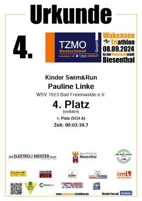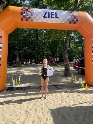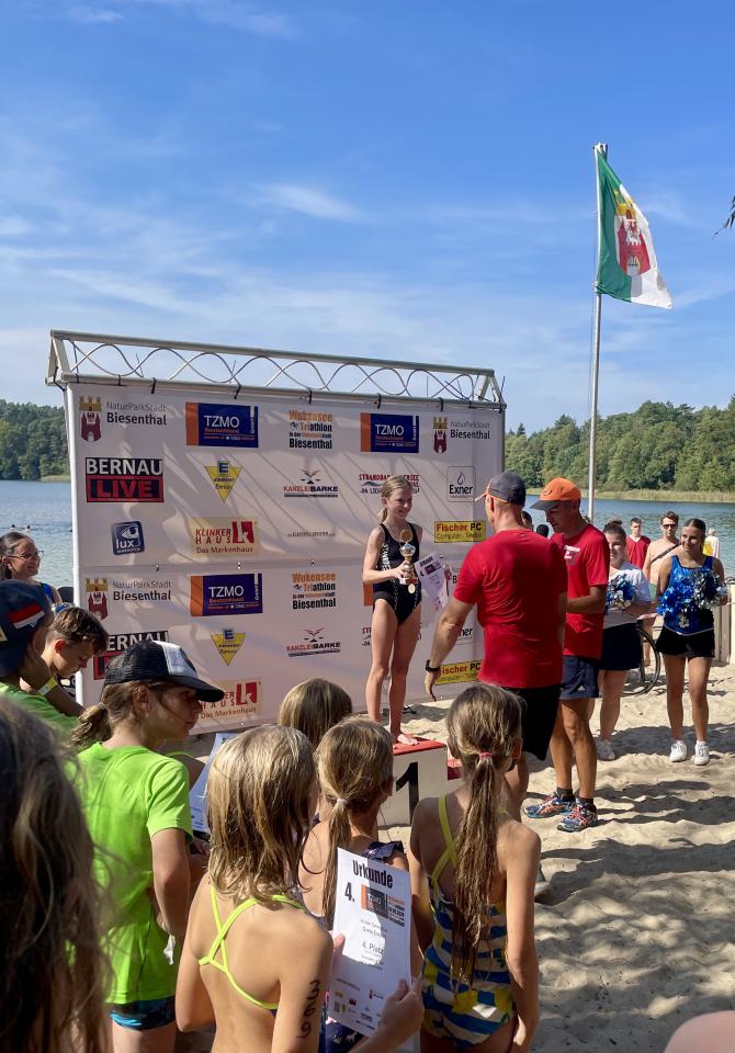 Pauline Linke gewinnt den swim&run beim Wukensee-Triathlon.