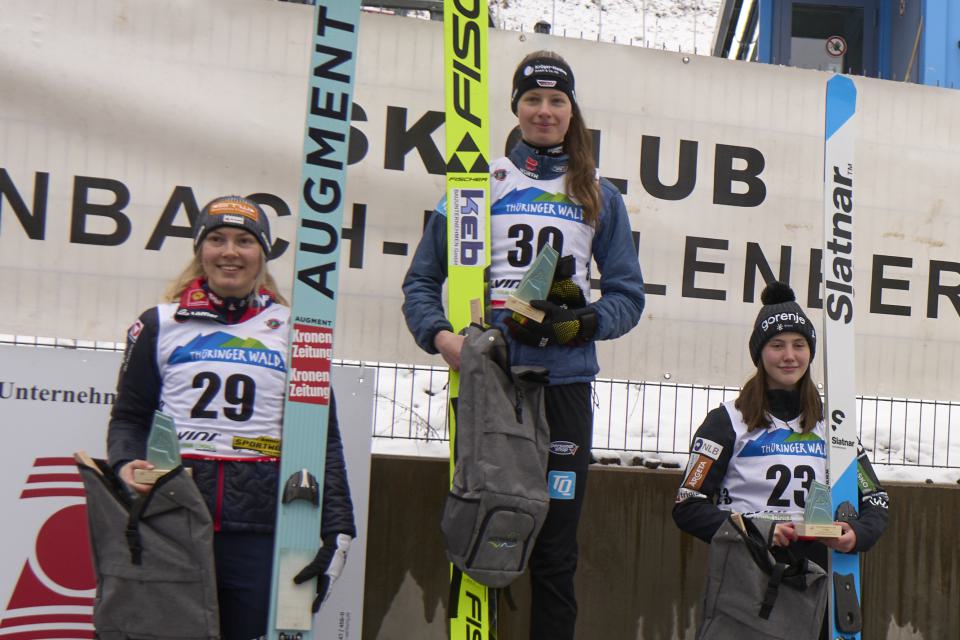 Aber auch da gab es spannende Wettkämpfe, denn alle, die nicht nach Trondheim durften, trafen sich in Oberhof zum Inter-Continental-Cup der Damen und zum FIS-Cup der Herren. Und da schaffte Alvine Holz, die Springerin des WSV 1923 Bad Freienwalde, das Doppel. An beiden Wettkampftagen stand sie am Ende ganz oben auf dem Podest. Dass sie ihre ersten beiden Siege im internationalen Wettkampfrummel gerade auf ihrer Trainingsschanze in Oberhof feiern konnte, freute sie ganz besonders. Ich entsinne mich noch, als sie mit sich selbst im vergangenen Jahr sehr unzufrieden war, weil sie gerade bei ihrem letzten Alpencupstart in Oberhof damals diesen Sieg nicht geschafft hatte. In der ICOC-Gesamtwertung steht sie damit zurzeit auf Rang Nummer 3 in der Welt.