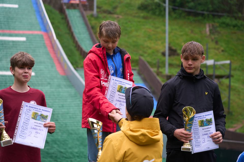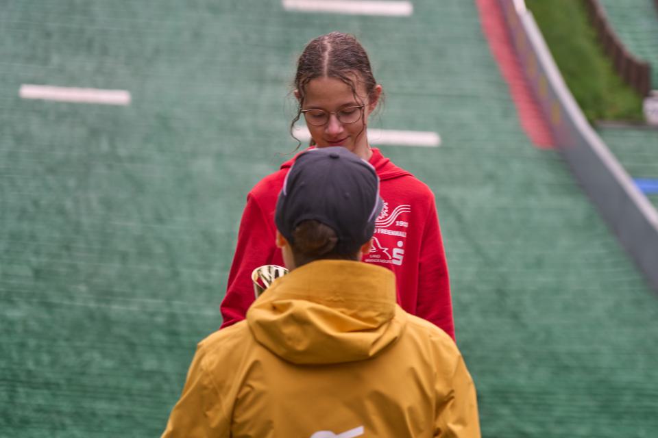Da beim Skispringen immer die ersten Sechs mit zur Siegerehrung nach vorne gerufen werden, konnten sich auch Louisa Biesecke (4.), Karla Anklam (5.) und Atreju Mulack (6.) noch den verdienten Beifall abholen. Das hervorragende Ergebnis der Athletinnen und Athleten des Wintersportvereins 1923 Bad Freienwalde vervollständigen schließlich Simon Krug (7.), Oskar Köppen (8.) und Pauline Linke (10.), die alle übrigens bei strömenden Regen unter die ersten Zehn in ihrer jeweiligen Altersklasse flogen.