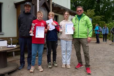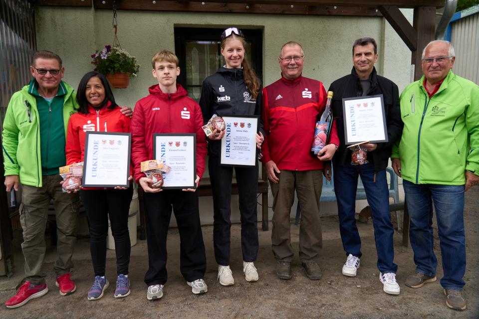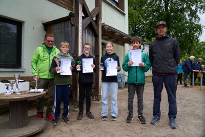 Mit solchen Erfolgen ist es leicht, vor allem Freude aufkommen zu lassen, wenn sich die Mitglieder und Sponsoren an den Schanzen treffen und ihre Besten hochleben lassen. Für die Jüngsten des Vereins hatte es zuvor noch die internen Vereins-Meisterschaften gegeben am Sonnabend. Auch sie freuten sich natürlich riesig über die Pokale für die Sieger. |