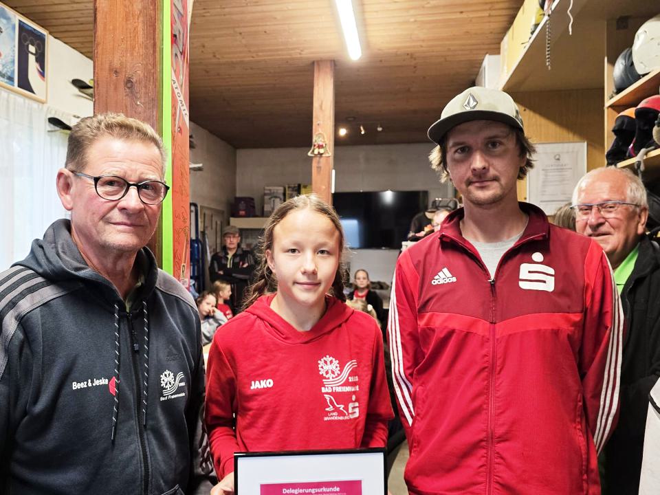 Der 23. Juli war der letzte Schultag vor den Sommerferien in Brandenburg. So war es auch für die 15jährige Bad Freienwalderin Minna Anklam, die am Vormittag ihr Zeugnis an der Oberbarnim-Schule in Eberswalde erhalten hatte. Nachmittags beim Wintersportverein 1923 in Bad Freienwalde konnte die Nachwuchsspringerin aus den Händen vom Vereinsvorsitzenden Dieter Bosse als Höhepunkt ihrer bisherigen sportlichen Karriere die Delegierungsurkunde des Landesskiverbandes Brandenburg an die Eliteschule des Sports nach Oberwiesenthal entgegen nehmen. Damit trainieren zurzeit sechs Bad Freienwalder Sportlerinnen und Sportler in Bundesleistungszentren des Deutschen Skiverbandes. Als Nachwuchskader des DSV wird Minna alles daran setzen, in der nächsten Saison den Sprung in die Jugend-Nationalmannschaft Spezialsprunglauf Deutschlands zu schaffen. In Oberwiesenthal hat sie mit Florian Fechner als zweiten Bad Freienwalder dabei einen sehr guten Trainingskollegen. Die Gruppe der Bad Freienwalder DSV – Kader vervollständigen die Weltcupspringerin Alvine Holz und Max Unglaube (Junioren-Nationalmannschaft) sowie Mila Twarok (Jugend-Nationalmannschaft) am Bundesleistungszentrum in Oberstdorf und der Junioren – Nordisch Kombinierte Moritz Terei in Oberhof. Allen Sechsen wünschen wir viele Erfolge in der kommenden Saison. |