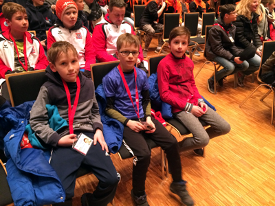 Hugo, Nico, Moritz und dahinter Stefan Horngacher (Trainer der Polnischen Nationalmannschaft)