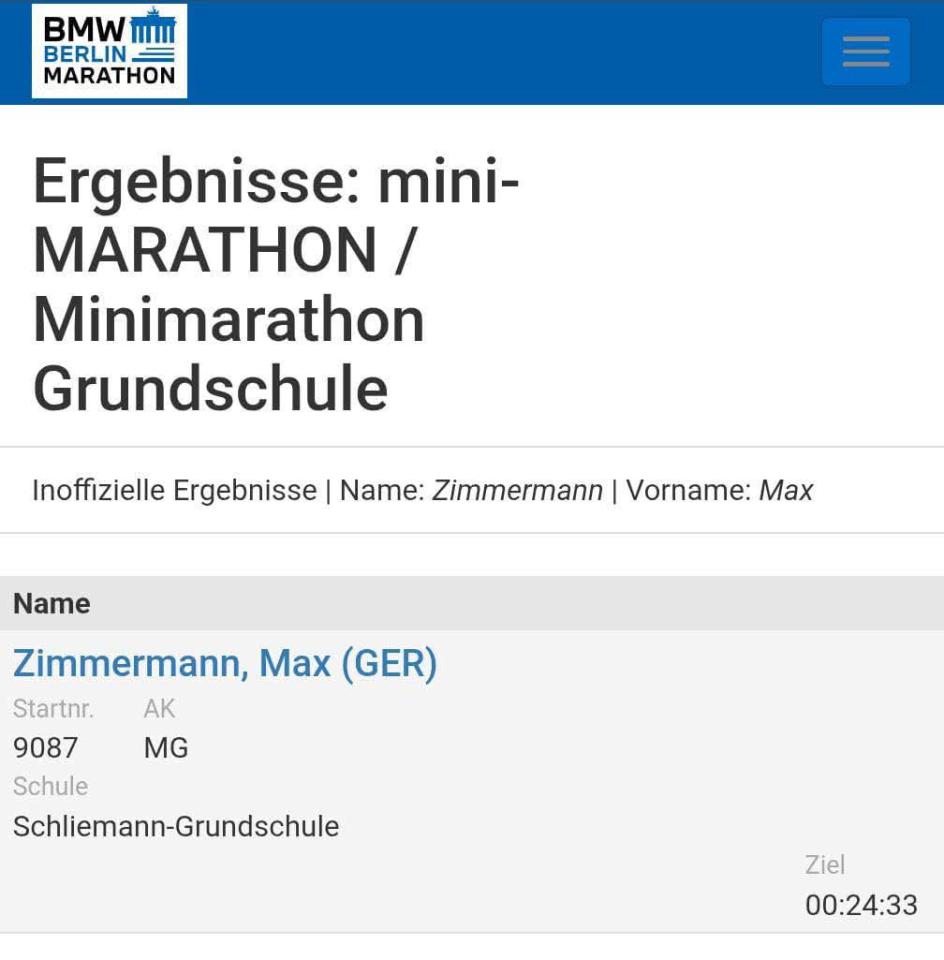 Max Zimmermann vom WSV 1923 startet in Berlin beim Mini-Marathon der Berliner Grundschulen